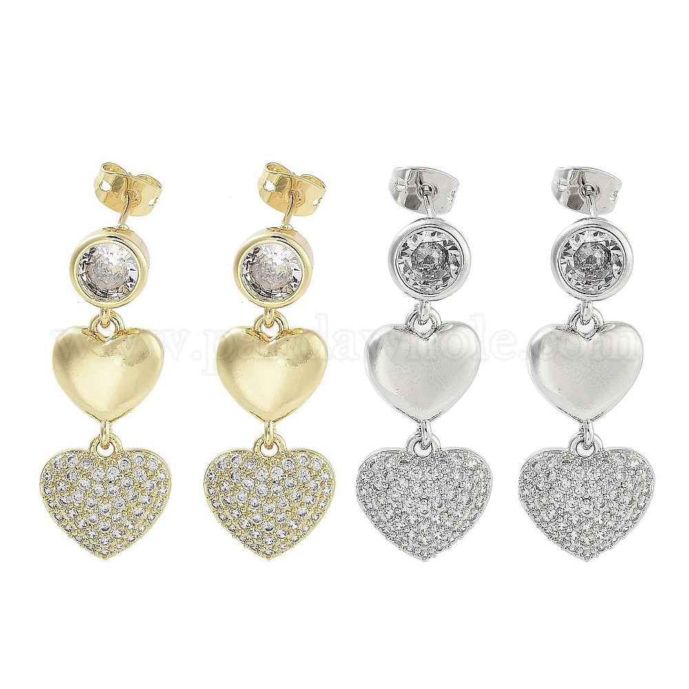 Серьги-пусеты из латуни в форме сердца с цирконием, долговечный, без свинца и без кадмия