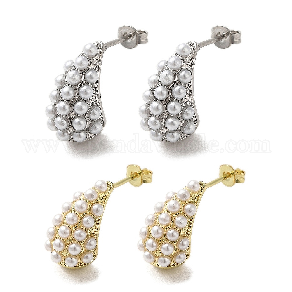 Серьги-гвоздики в форме капли из латуни с реечным покрытием, с пластиковой жемчужины, без свинца и без кадмия, долговечный (02RXBS)