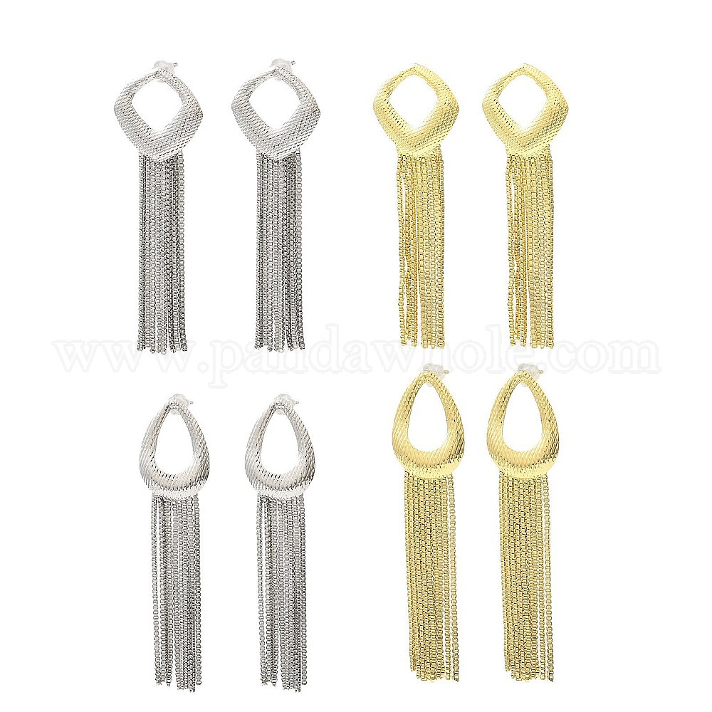 • Платина Серьги-гвоздики из латуни с полыми ромбами, серьги-кисточки с цепочками, долговечный, без свинца и без кадмия, платина, 68x21 мм, штифты : 11x0.8 мм