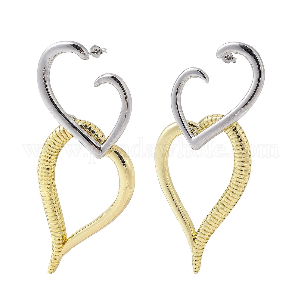 • Настоящее золото 18K Латунные качают серьги, полые сердца, реальный 18 k позолоченный, 86x36 мм