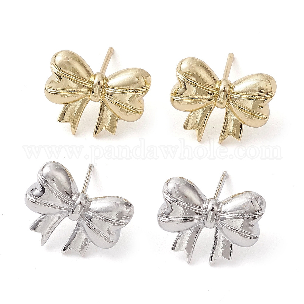 Серьги-гвоздики из латуни с бантом, долговечный, без свинца и без кадмия (02S1DA)