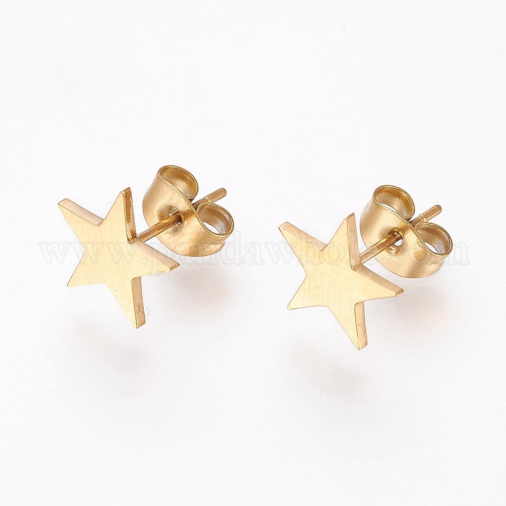 • Золотой Ионное покрытие (IP) звезда 304 серьги-гвоздики из нержавеющей стали, гипоаллергенные серьги, золотые, 9.5x9.5x1.2 мм, штифты : 0.6 мм