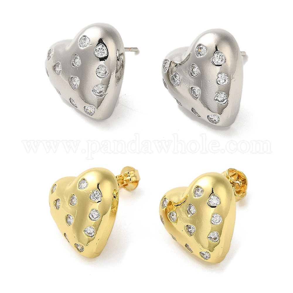 Серьги-гвоздики из латуни с микро-паве и кубическим цирконием в форме сердца для женщин, долговечный, без свинца и без кадмия