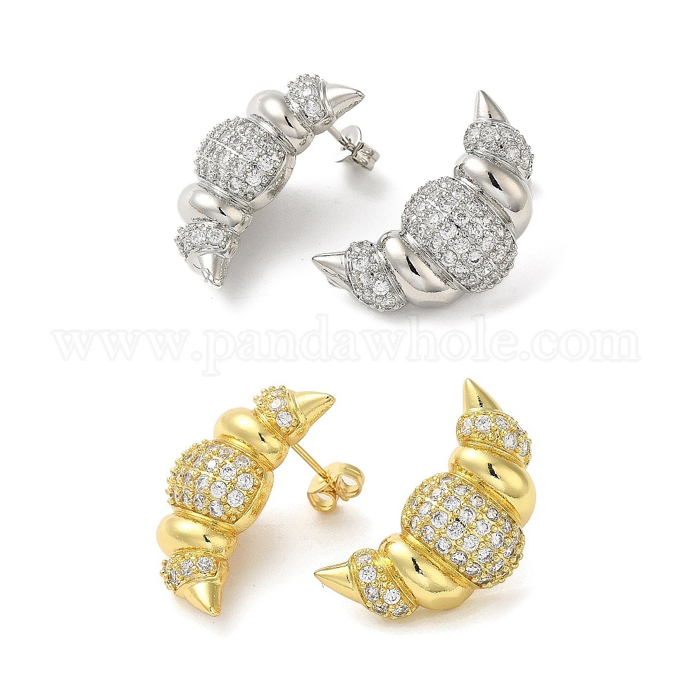 Серьги-гвоздики из латуни с микро-паве и кубическим цирконием для женщин с стойкой для круассанов, долговечный, без свинца и без кадмия