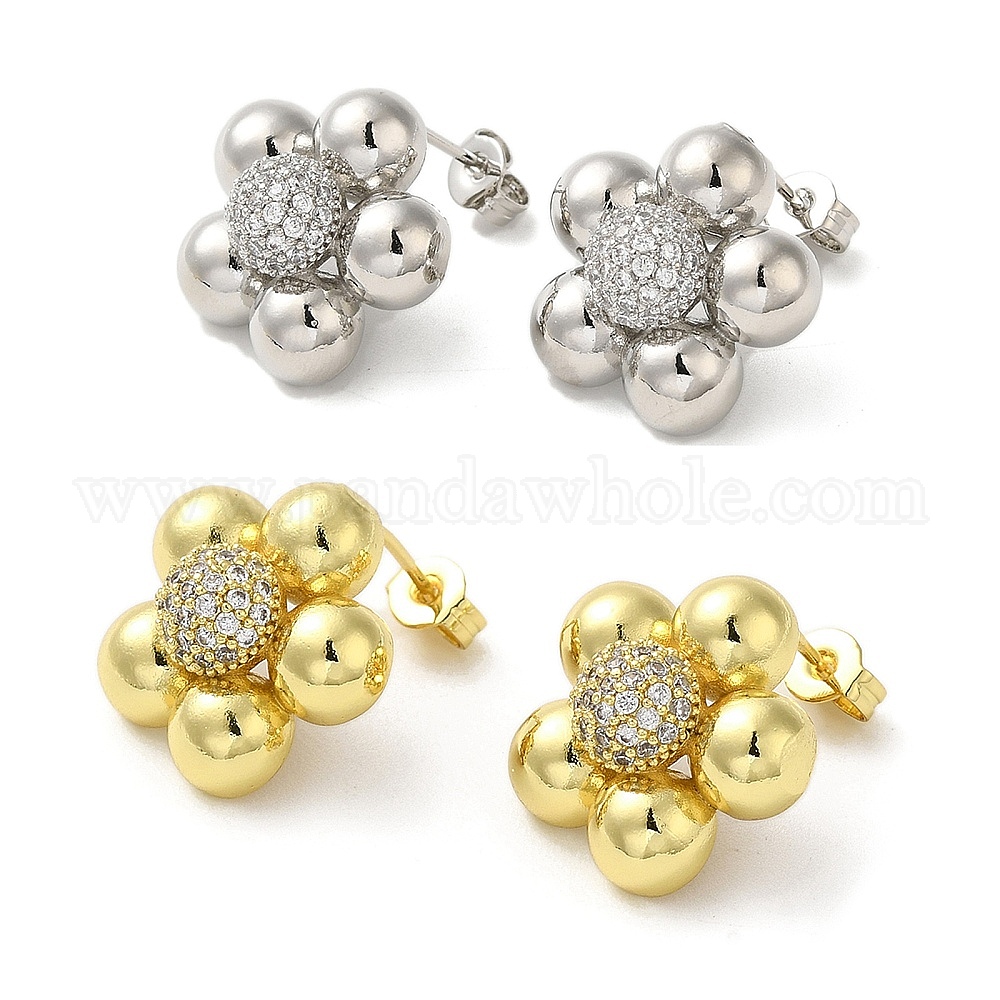 Женские серьги-гвоздики из латуни с микро-паве и цветочной стойкой из кубического циркония, долговечный, без свинца и без кадмия