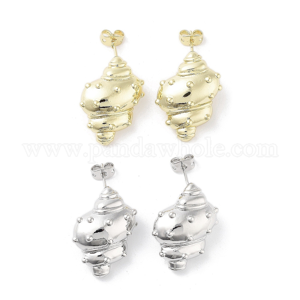 • Платина Латунная серьга-гвоздик с покрытием стойки, без кадмия и без свинца, долговечный, формы раковины, платина, 24.5x18.5 мм