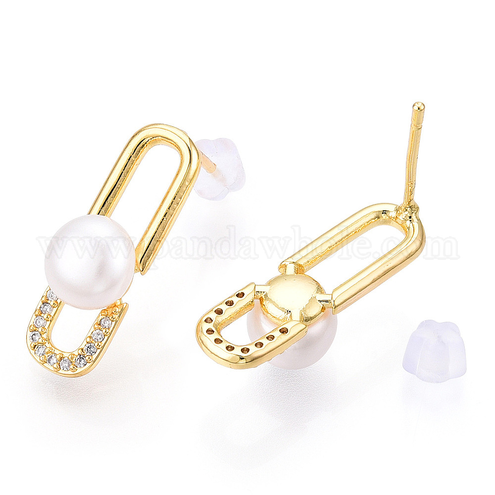 Серьги-гвоздики из натурального жемчуга с микропаве фианитами, серьги из латуни со шпильками из стерлингового серебра 925, клипсы