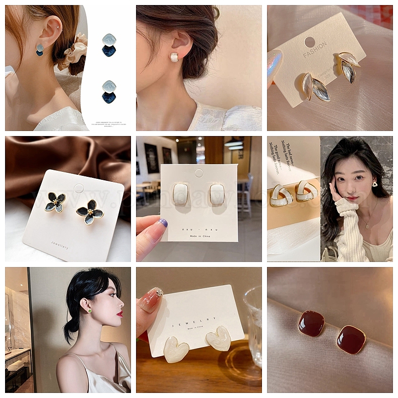 Серьги-гвоздики с эмалью из сплава квадрат/сердце/треугольник/бабочка, с 925 штырями стерлингового серебра, золотые (02SAMY)