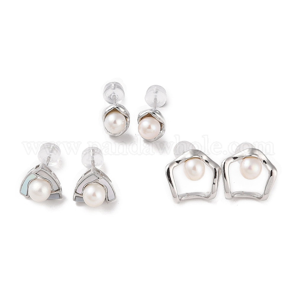 • Другие Серьги-гвоздики из стерлингового серебра с защитой от потускнения, с натуральной жемчужиной, украшения для женщин, 13x14 мм