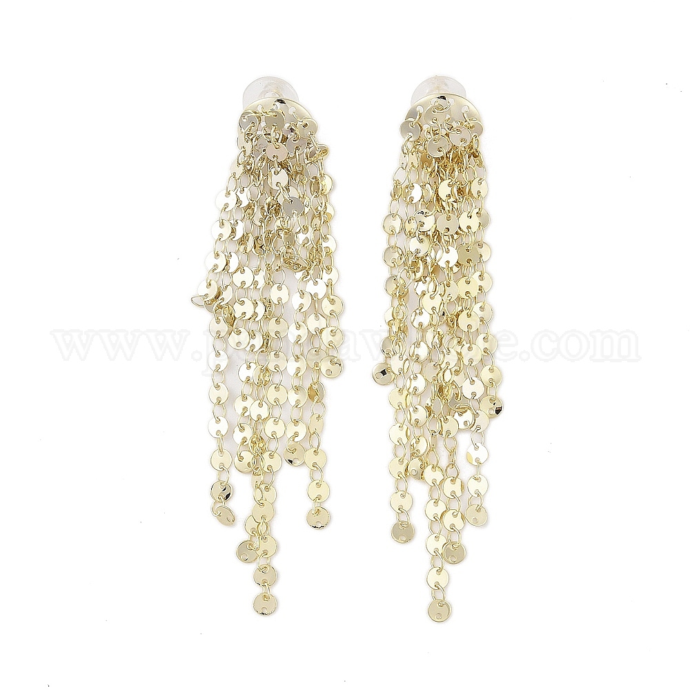 Серьги-гвоздики с латунными подвесками, сплюснутая бахрома