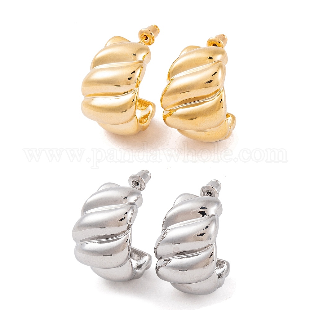 • Платинированный Женские латунные серьги-гвоздики в форме полукольца с-образной формы, Реальная платина, 28x17 мм