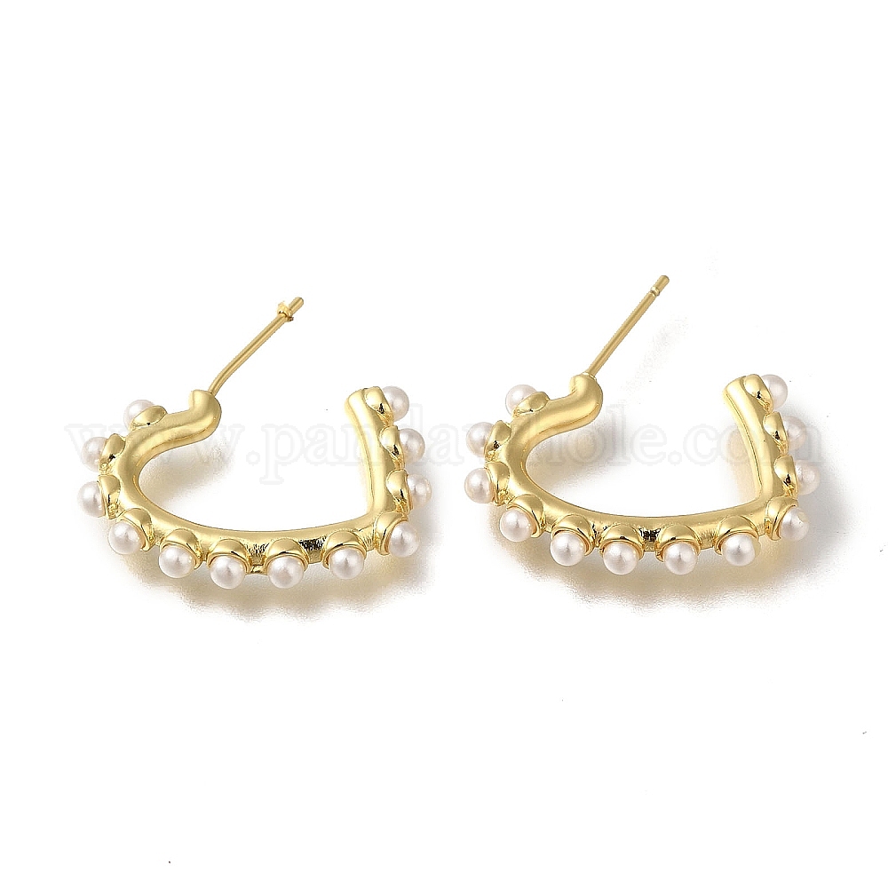 Серьги-гвоздики из латуни с реечным покрытием, с абс пластмассовой имитационной жемчужиной, долговечный, без кадмия и без свинца, сердце