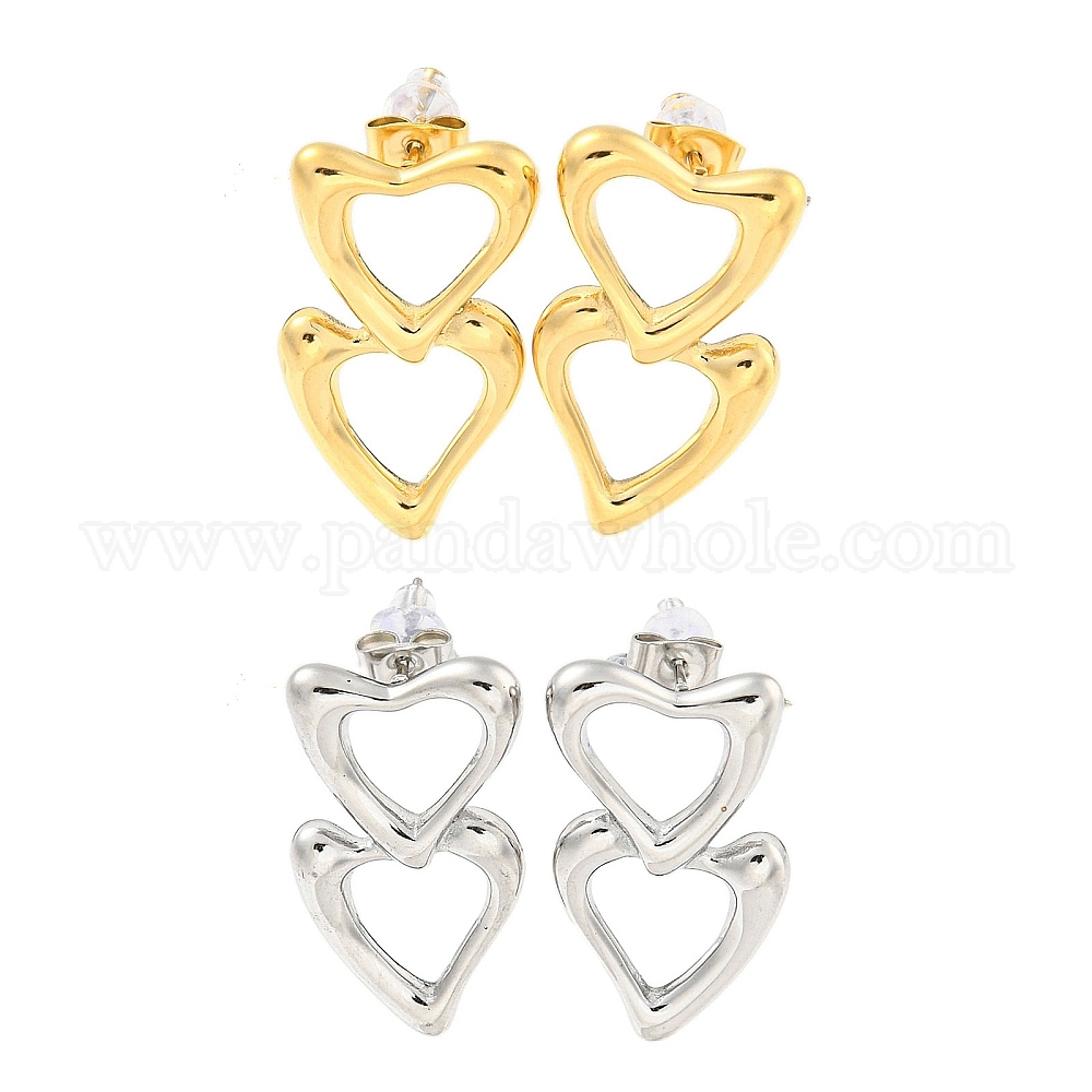 • Нержавеющая Сталь Цвет Не тускнеет 304 серьги-гвоздики из нержавеющей стали, сердце, цвет нержавеющей стали, 30x16.5 мм
