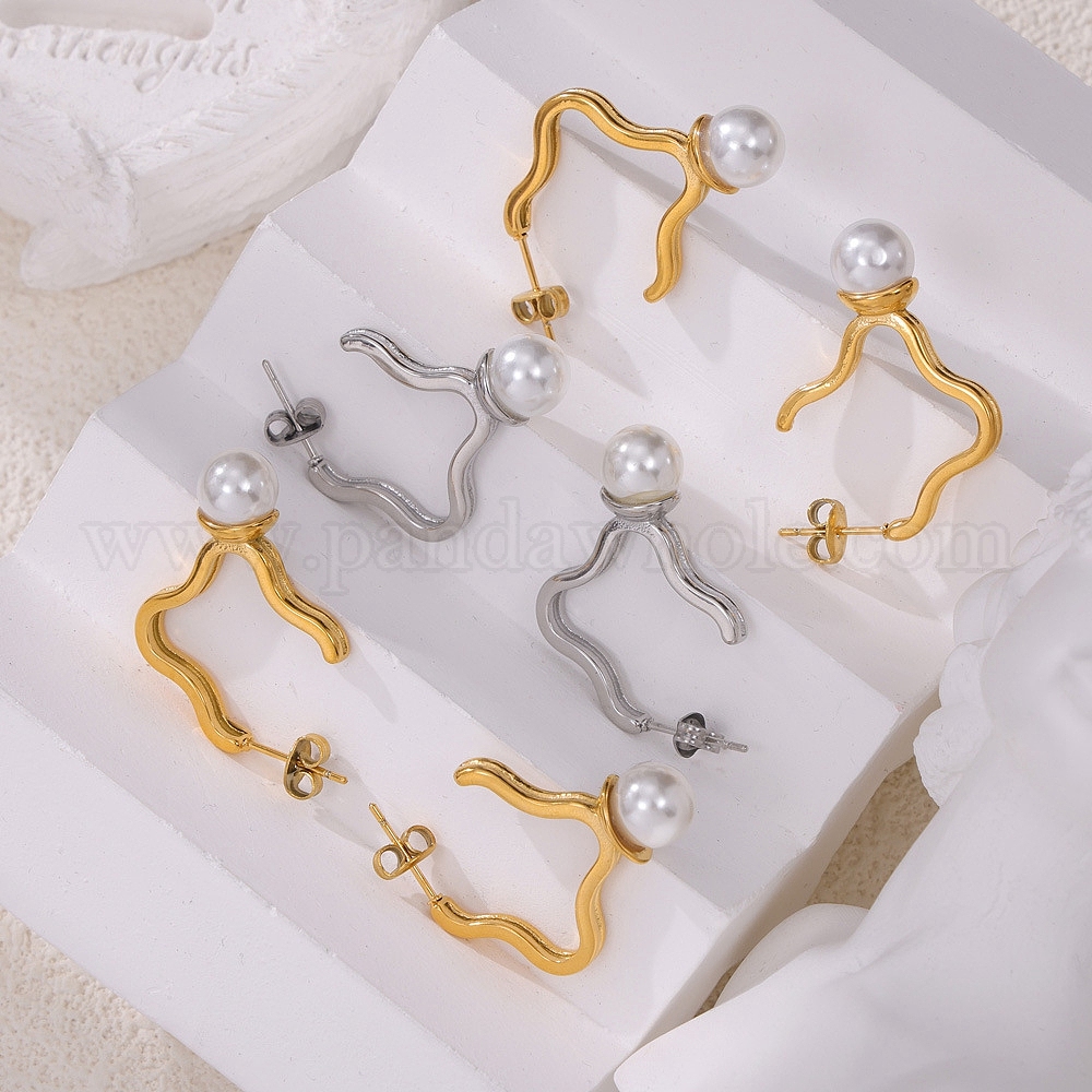 Серьги шпилька нержавеющая сталь, с искусственным жемчугом для женщин