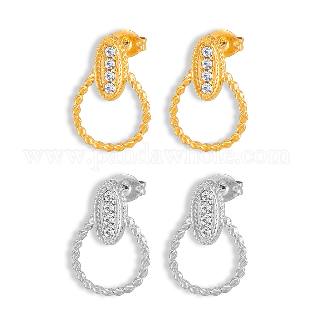 Овальные серьги-гвоздики из нержавеющей стали, с четким кубического циркония, для женщин
