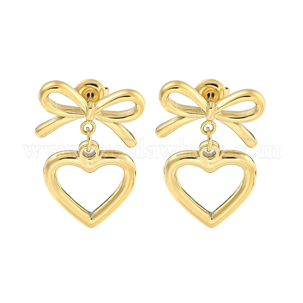 Ионное покрытие (ip) 304 серьги-гвоздики из нержавеющей стали для женщин, сердце с бантом
