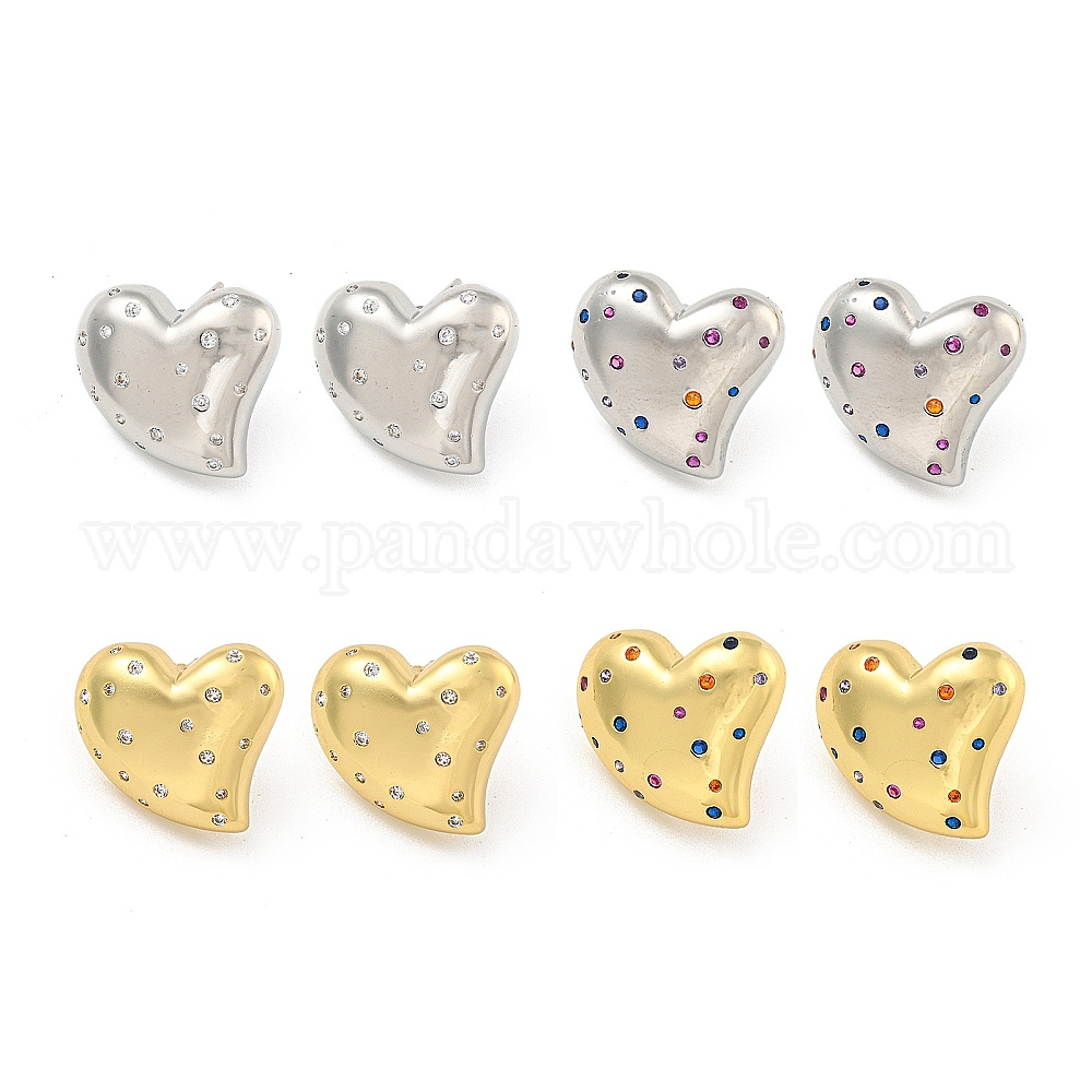 Серьги-гвоздики из латуни с микропаве и кубическим цирконием, покрытие стойки, без кадмия и без свинца, долговечный, сердце (02TQ2Y)