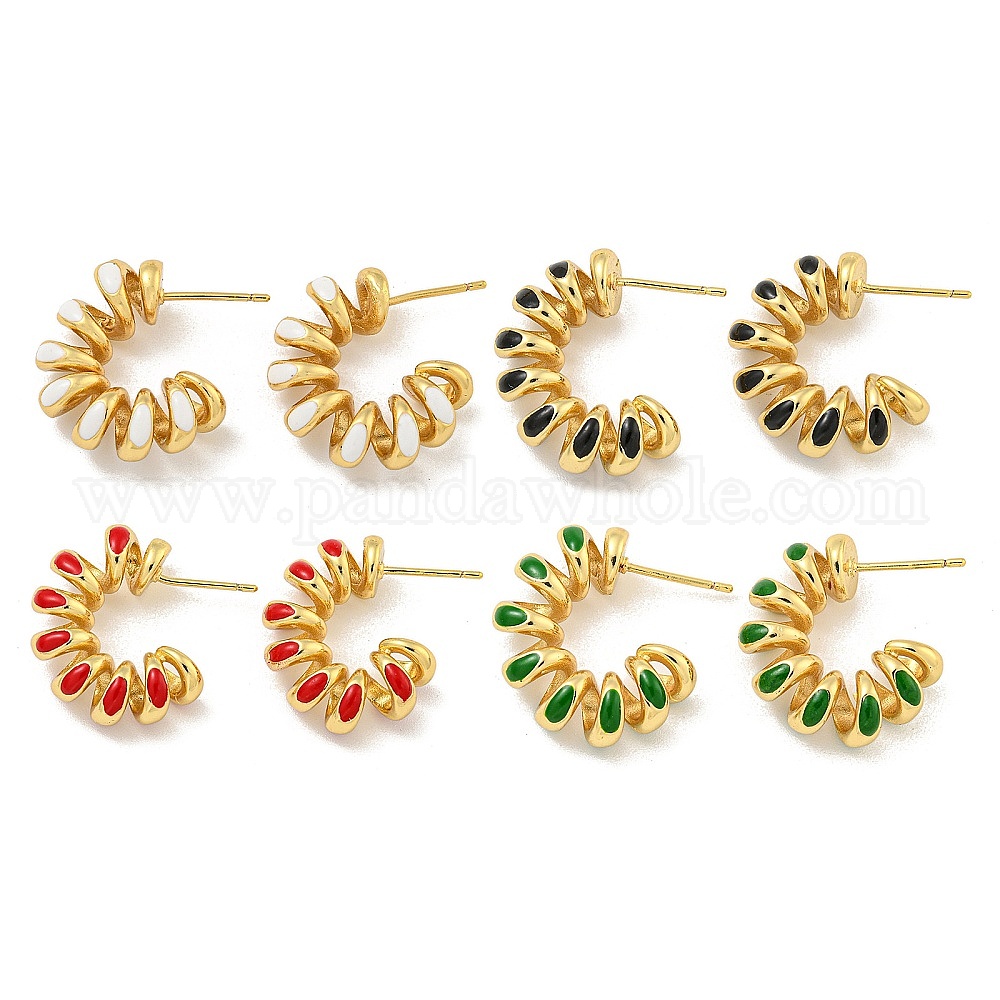 Серьги-гвоздики из латуни с реечным покрытием, с эмалью, без кадмия и без свинца, долговечный, реальный 18 k позолоченный, изогнутая линия (02TQ8E)