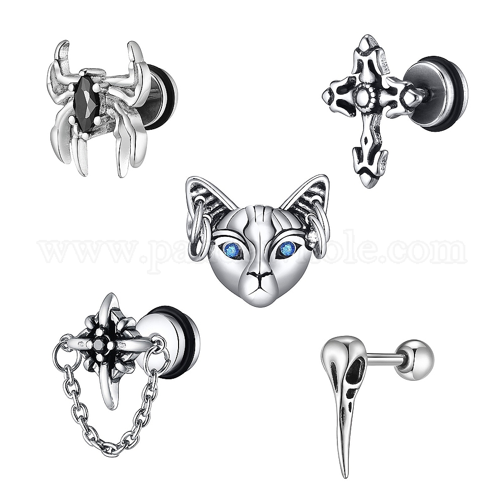 Мужские серьги-гвоздики из нержавеющей стали с микропаве и кубическим цирконием, античное серебро