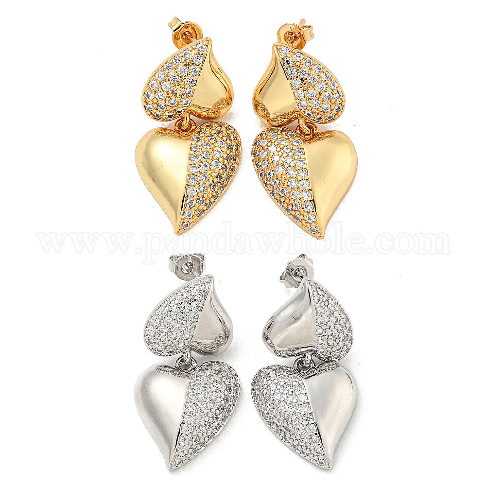 Серьги-гвоздики из латуни в форме сердца с прозрачным фианитом и паве