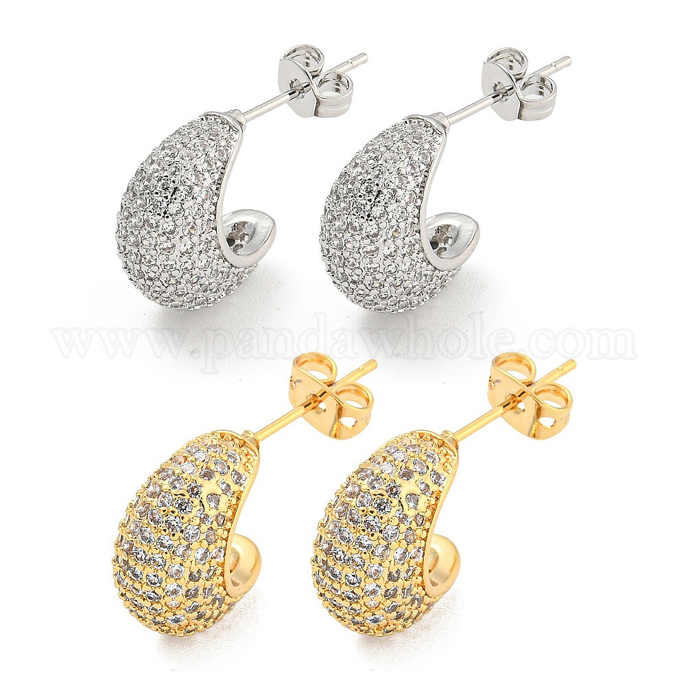 Серьги-гвоздики из латуни с каплевидным паве и прозрачным фианитом
