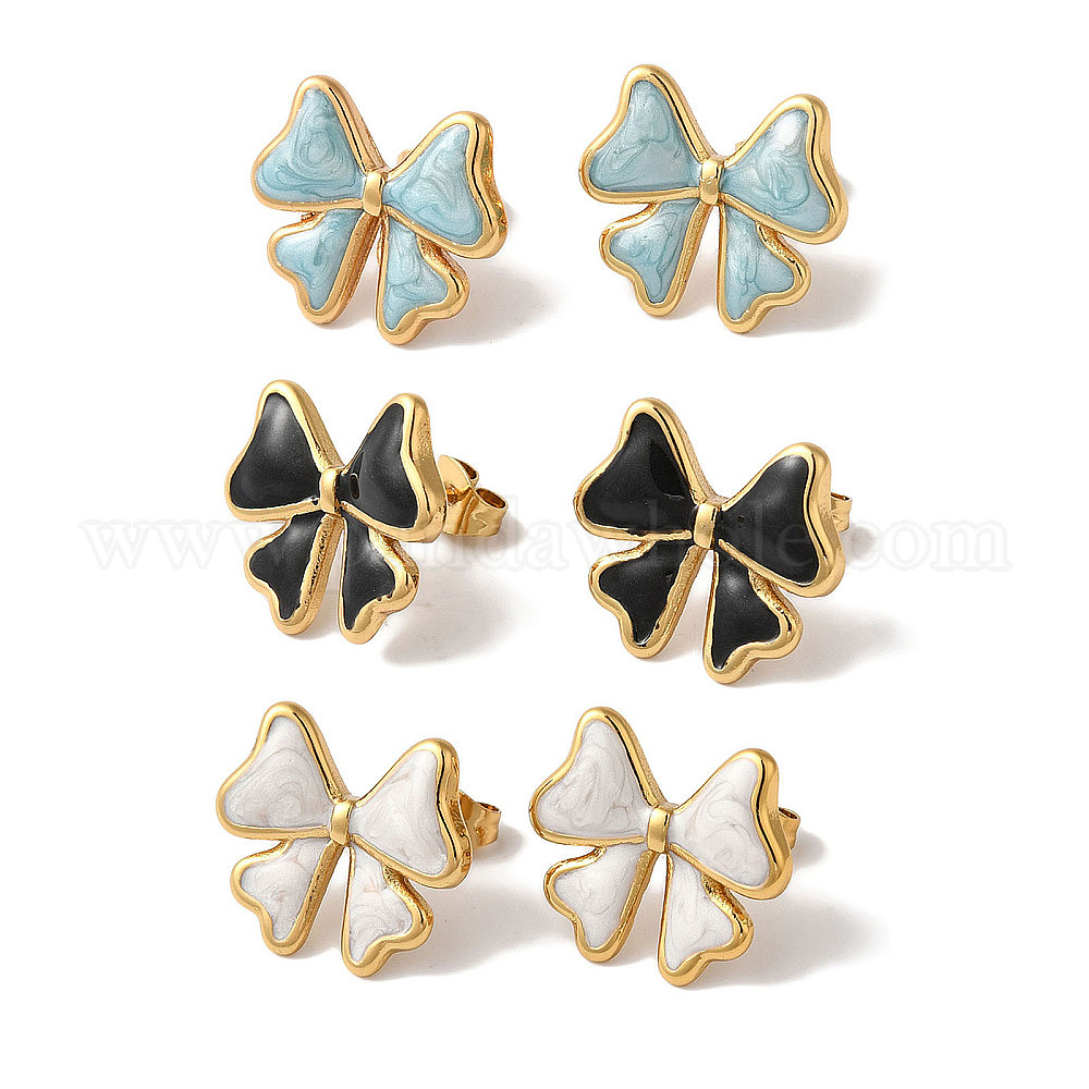 Золотое ионное покрытие с бантом (ip) 304 серьги-гвоздики из нержавеющей стали для женщин, с эмалью
