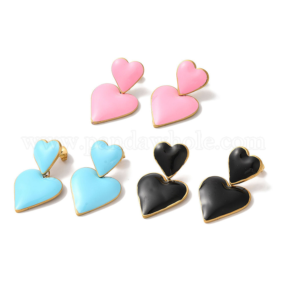 Сердце с золотым ионным покрытием (ip) 304 серьги-гвоздики из нержавеющей стали для женщин, с эмалью
