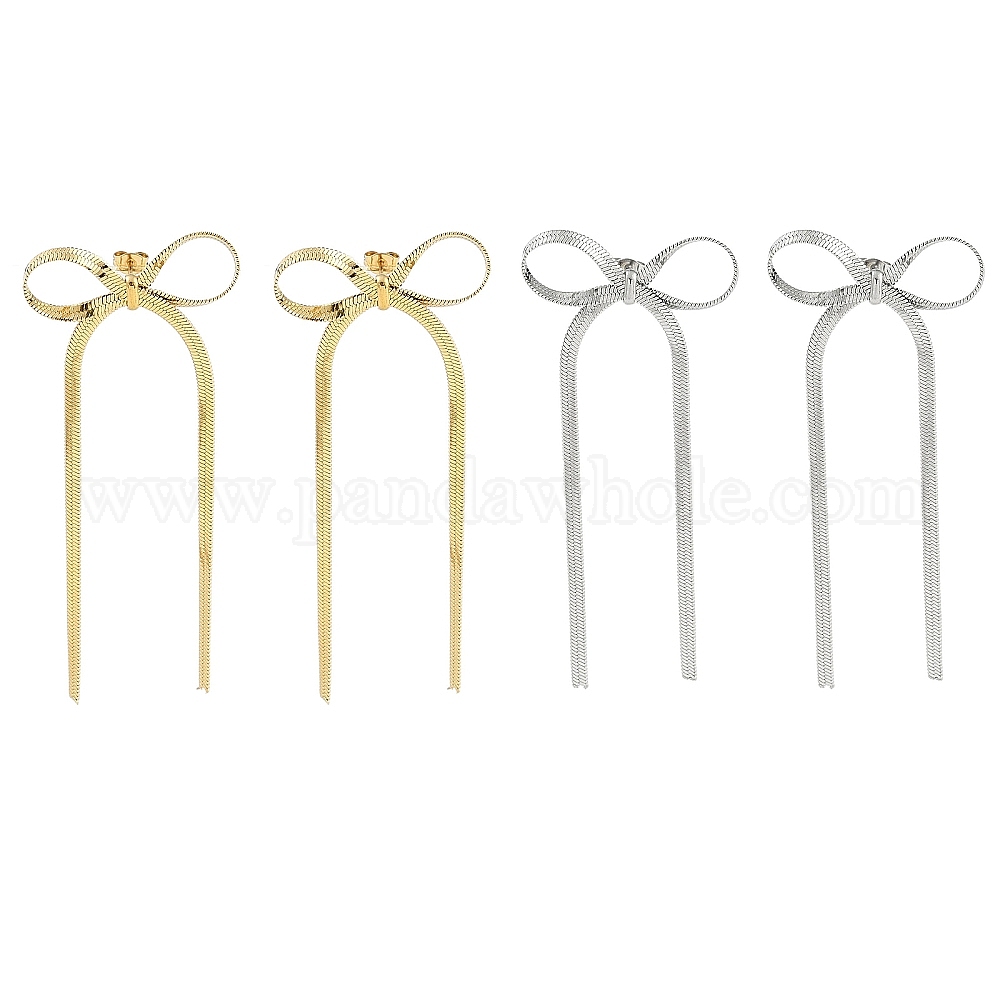 • Нержавеющая Сталь Цвет Не тускнеют 304 серьги-гвоздики из нержавеющей стали, бантом, цвет нержавеющей стали, 85x39 мм
