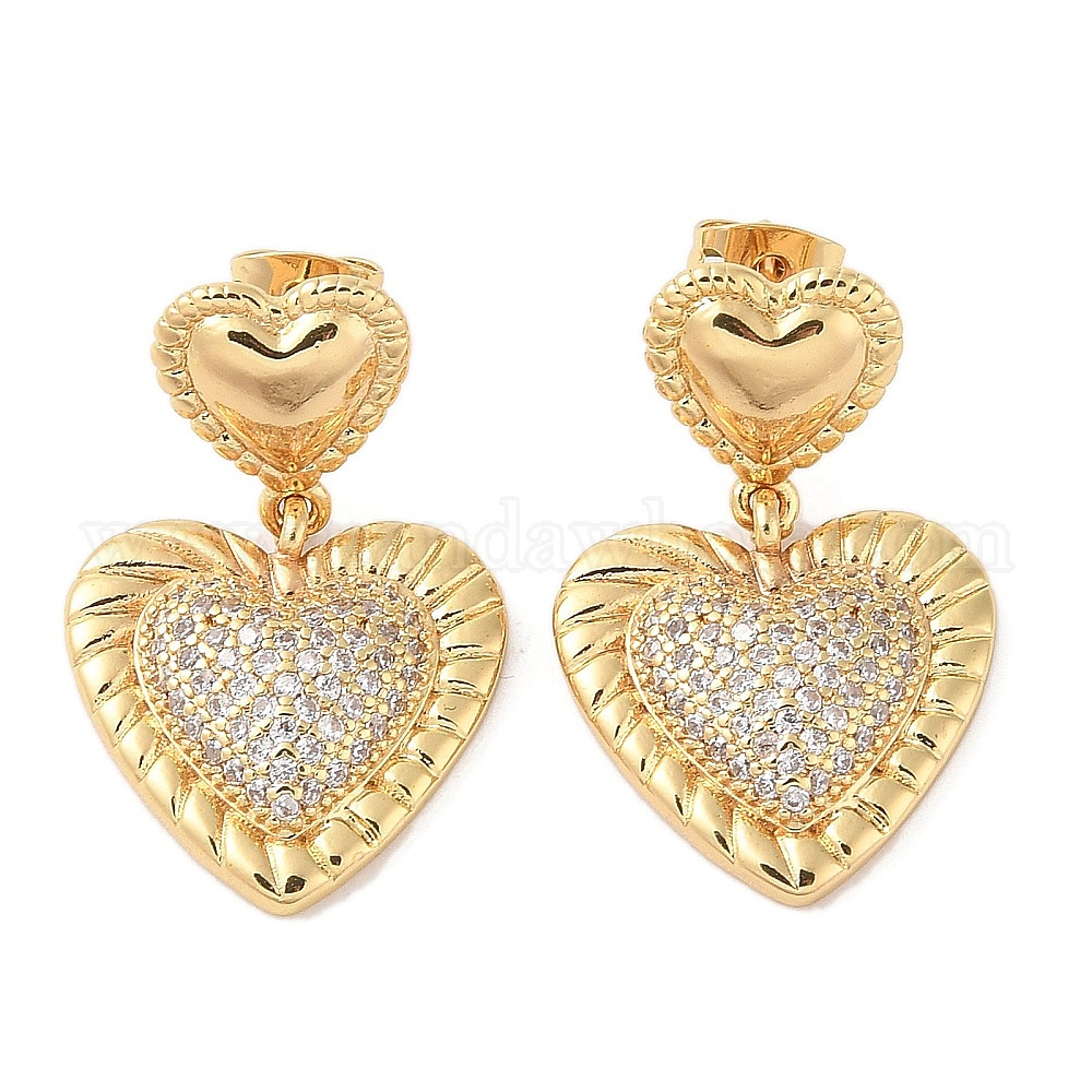 • Настоящее золото 18K Серьги-гвоздики из латуни с микро-паве, прозрачные серьги-гвоздики с кубическим цирконием для женщин, без кадмия и без свинца, долговечный, сердце, реальный 18 k позолоченный, 30x19 мм