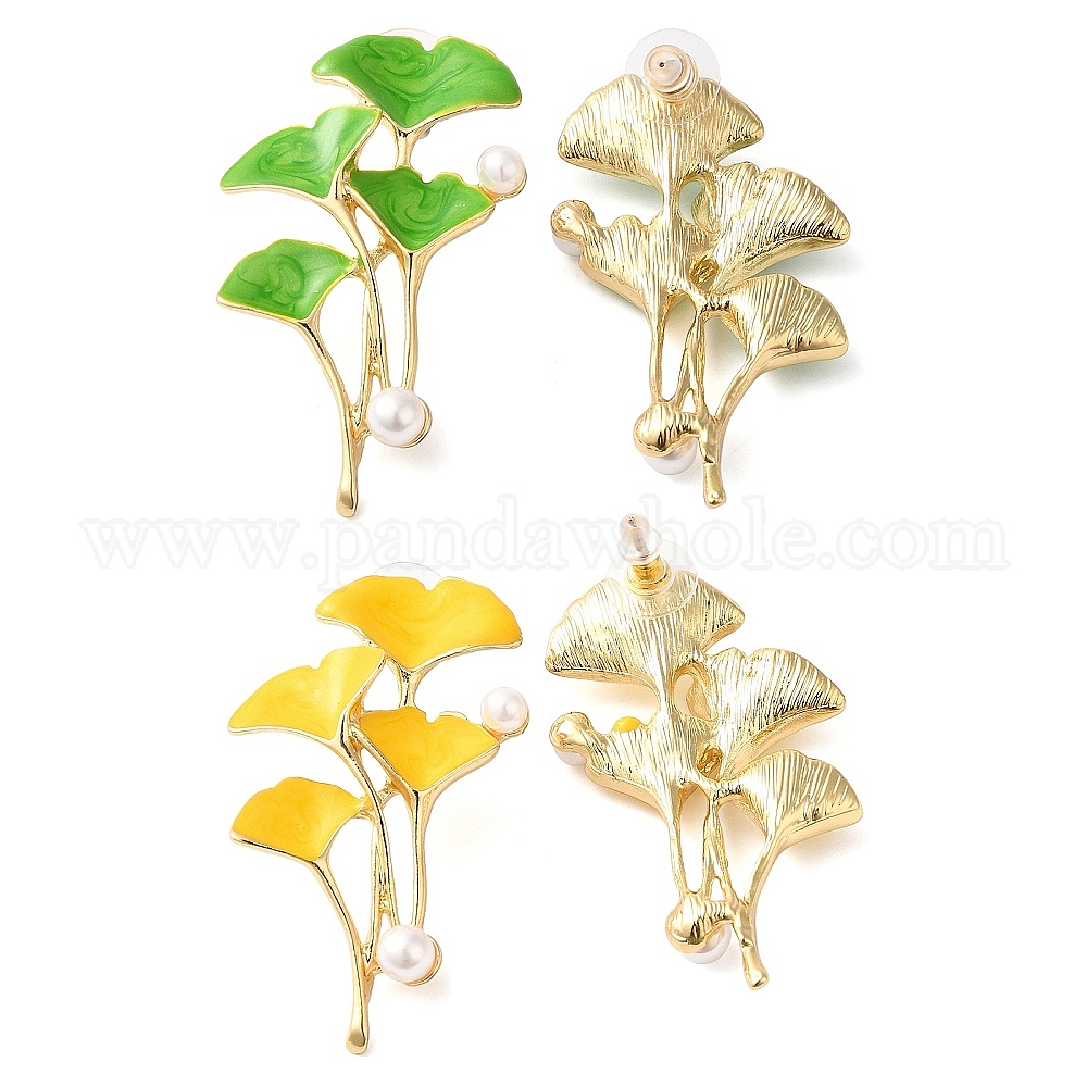Сплав с эмалевыми серьгами, лист, золотые (02W2Q5)