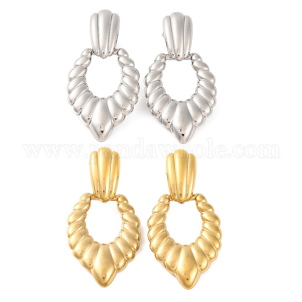 • Нержавеющая Сталь Цвет Не тускнеющие 304 серьги-гвоздики из нержавеющей стали, овальные, цвет нержавеющей стали, 46x22 мм
