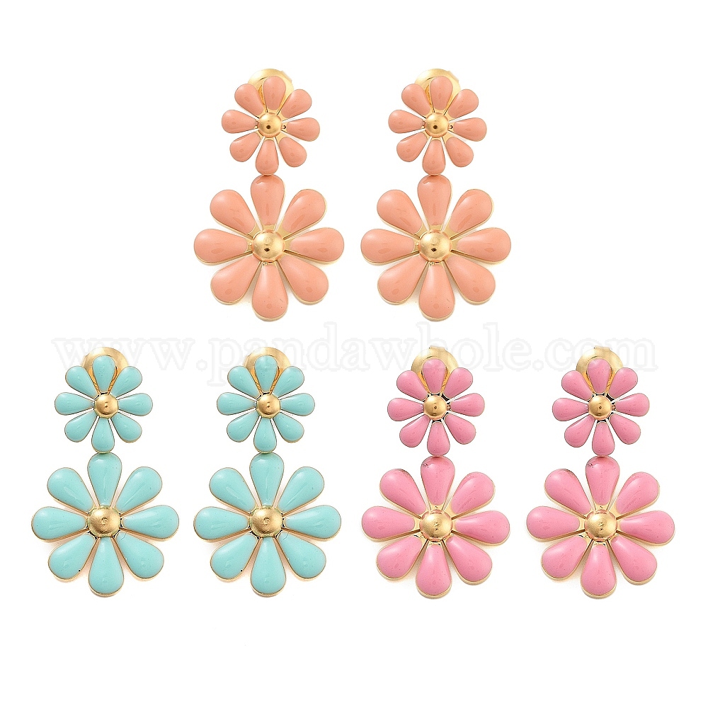 • Легкий Лосось 304 серьги из нержавеющей стали эмаль, цветок, золотые, светлый померанцевый, 31x18.1 мм