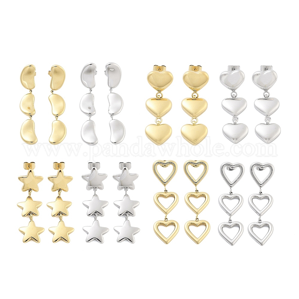 • Сердце 304 из нержавеющей стали серьги, золотые, сердце, 36x11 мм