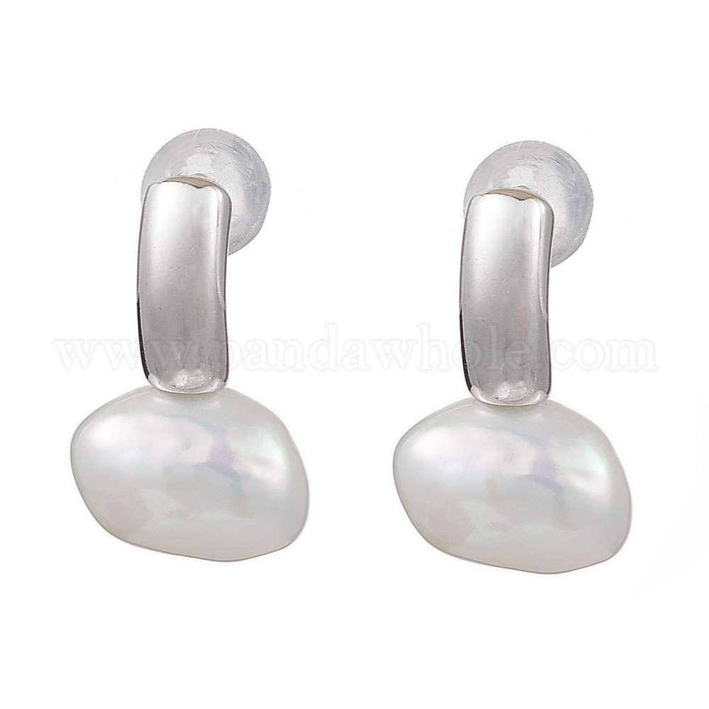 Натуральные жемчужные ушные шпильки, с фурнитурой из стерлингового серебра, овальные