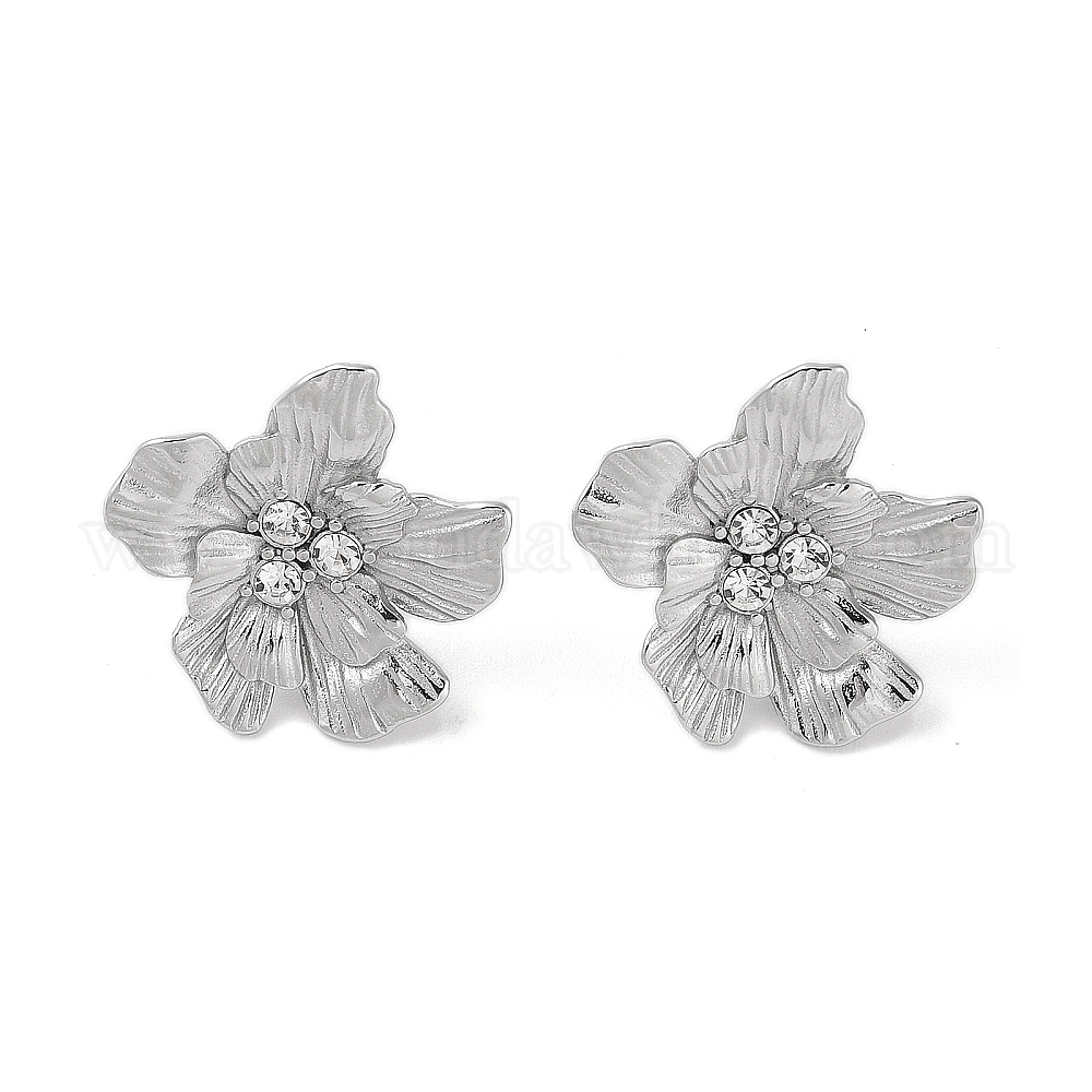 • Серебро 304 серьги-гвоздики со стразами из нержавеющей стали для женщин, цветок, серебряные, 25x24.4 мм