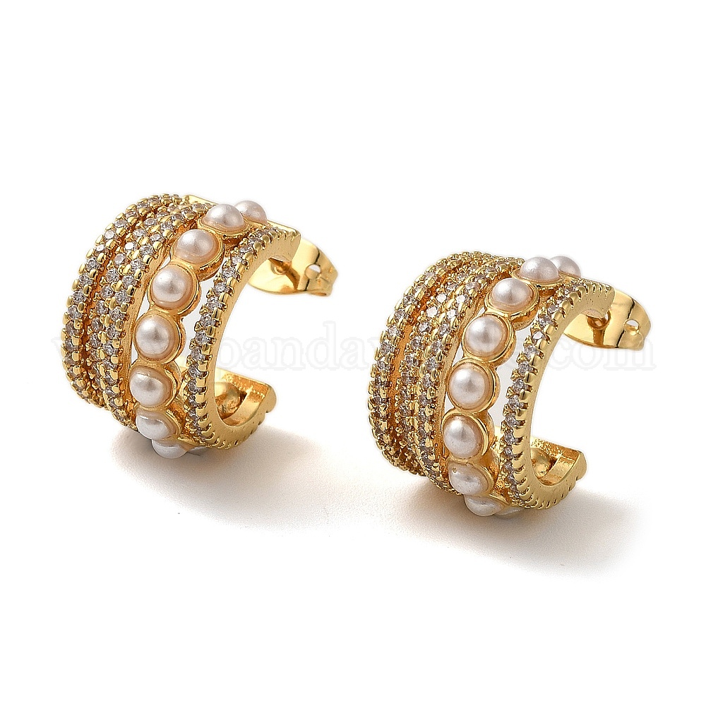 Серьги кубического циркония, стеллаж для латунных украшений для женщин, с абс пластмассовой имитационной жемчужиной, без свинца и без кадмия, долговечный