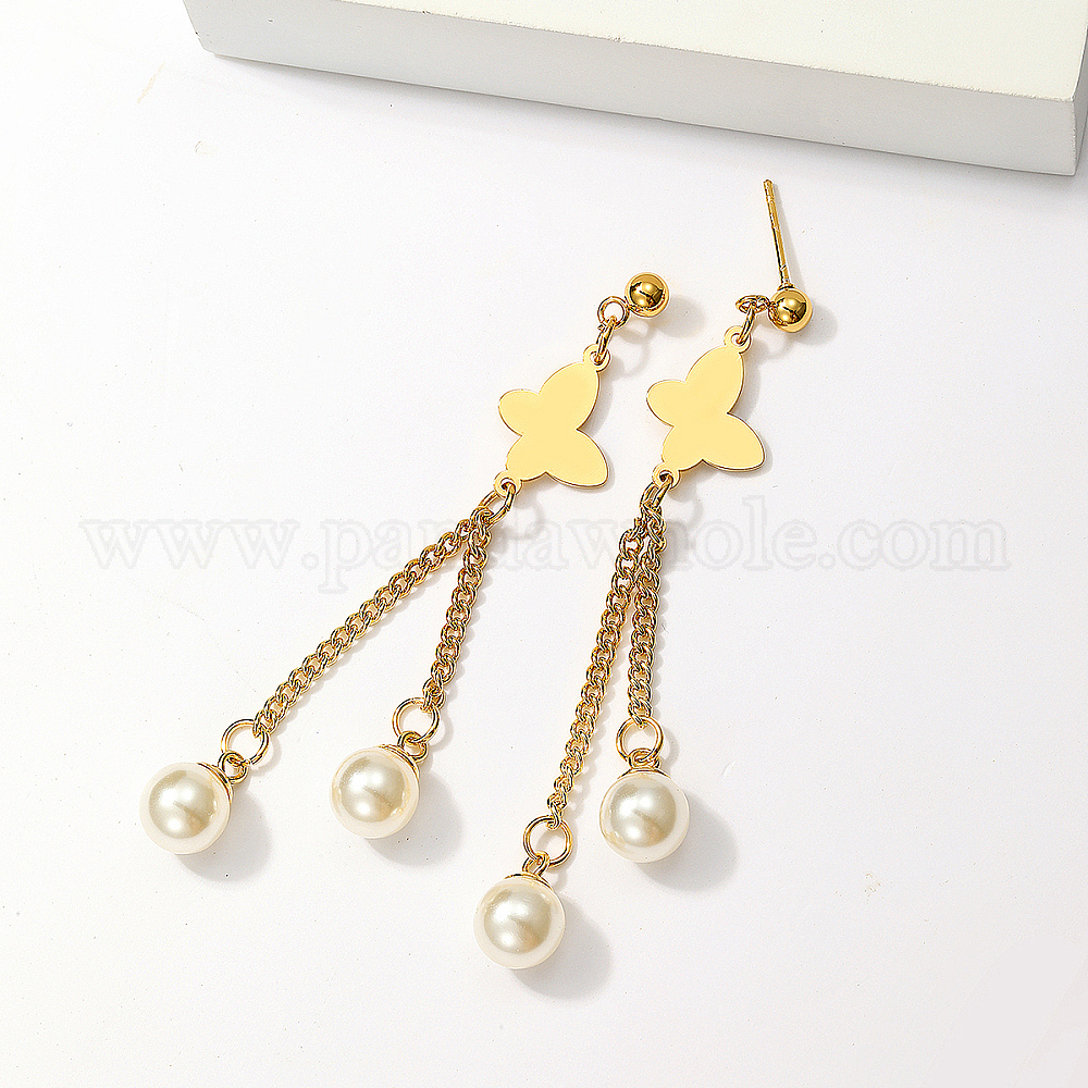 Элегантная классика 201 серьги-гвоздики с кисточками из нержавеющей стали в форме бабочки, с имитацией жемчуга