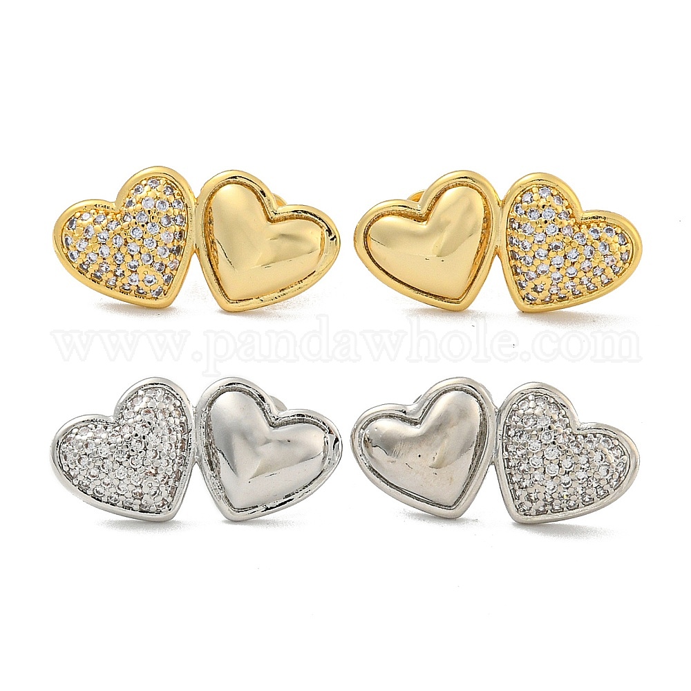 Серьги-гвоздики с прозрачным паве из латуни с кубическим цирконием, сердце