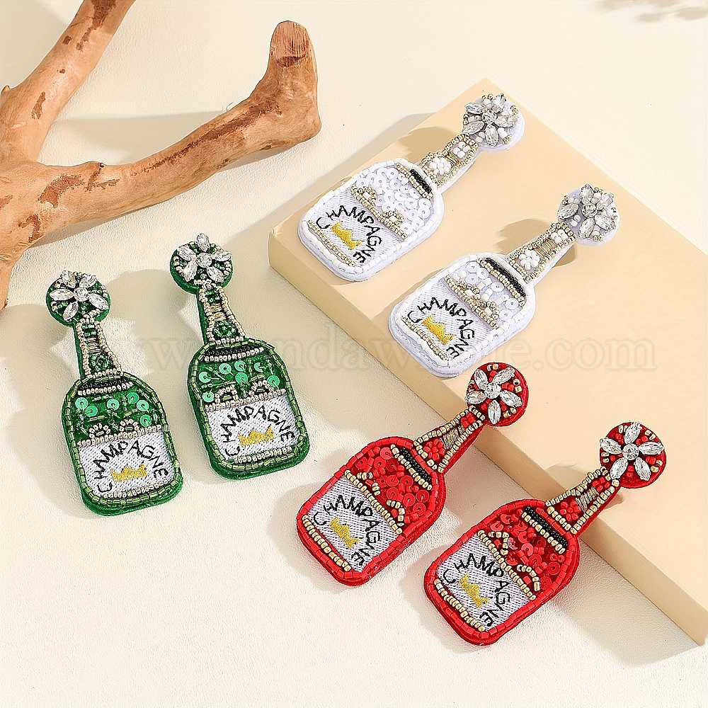 • Белый Женские серьги-гвоздики из бисера с дизайном пивного фестиваля в виде бутылки пива, универсальный подарок, белые, 85x35 мм
