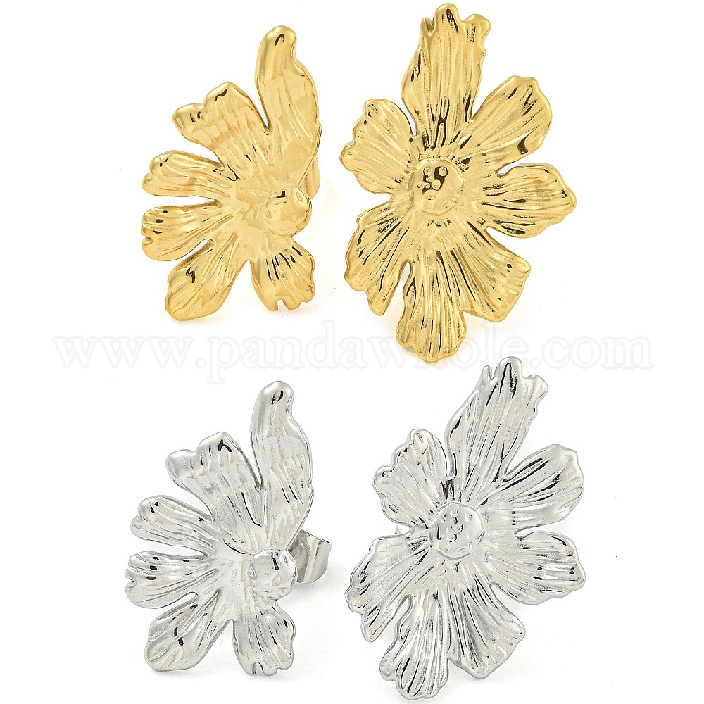 • Золотой Ионное покрытие (ip) 304 серьги-гвоздики из нержавеющей стали для женщин, цветок, золотые, 21.5x13 мм, 26x17 мм