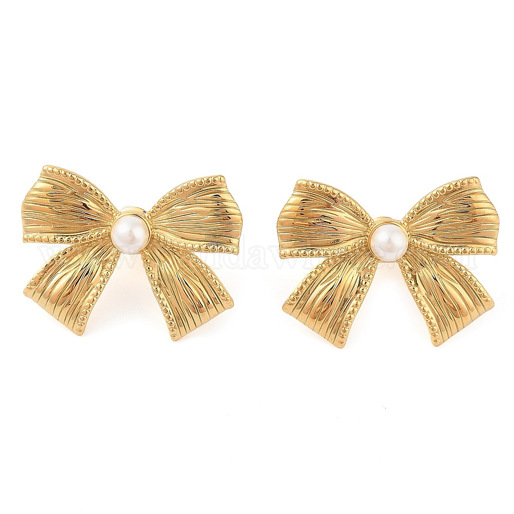 304 серьги-гвоздики из нержавеющей стали для женщин, с жемчугом из раковины , бантом