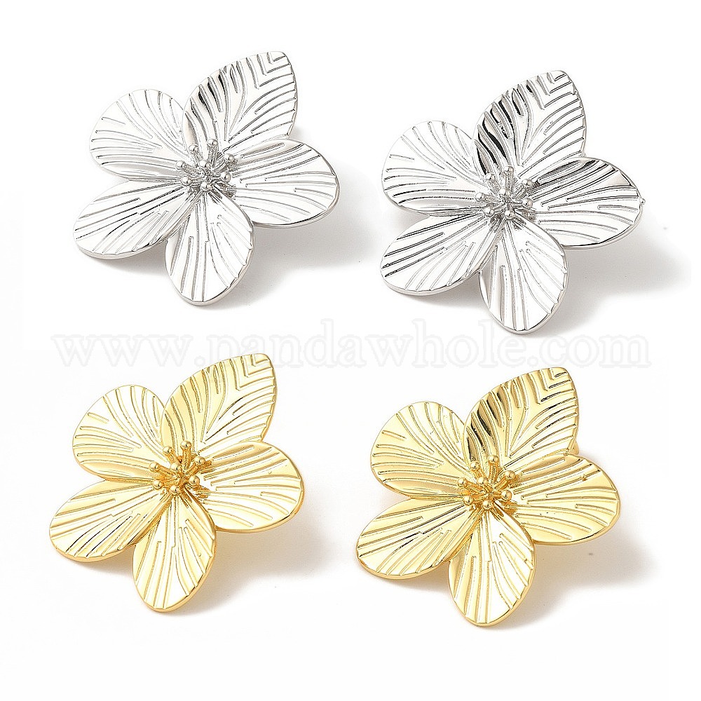 Серьги-гвоздики из латуни с реечным покрытием, без кадмия и без свинца, долговечный, цветок (02WZB7)
