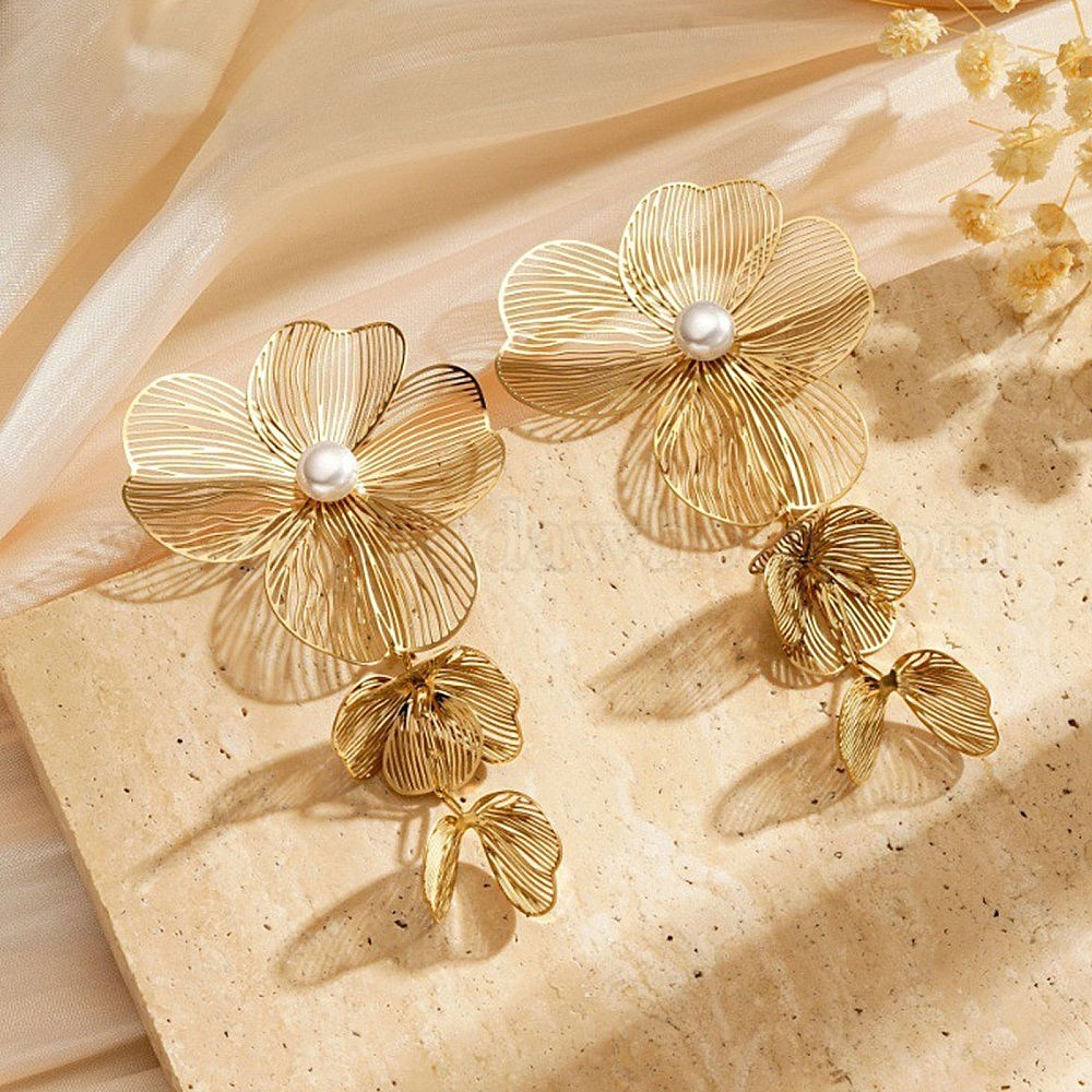 304 серьги-гвоздики из нержавеющей стали для женщин, с пластиковой имитационной жемчужиной, цветок