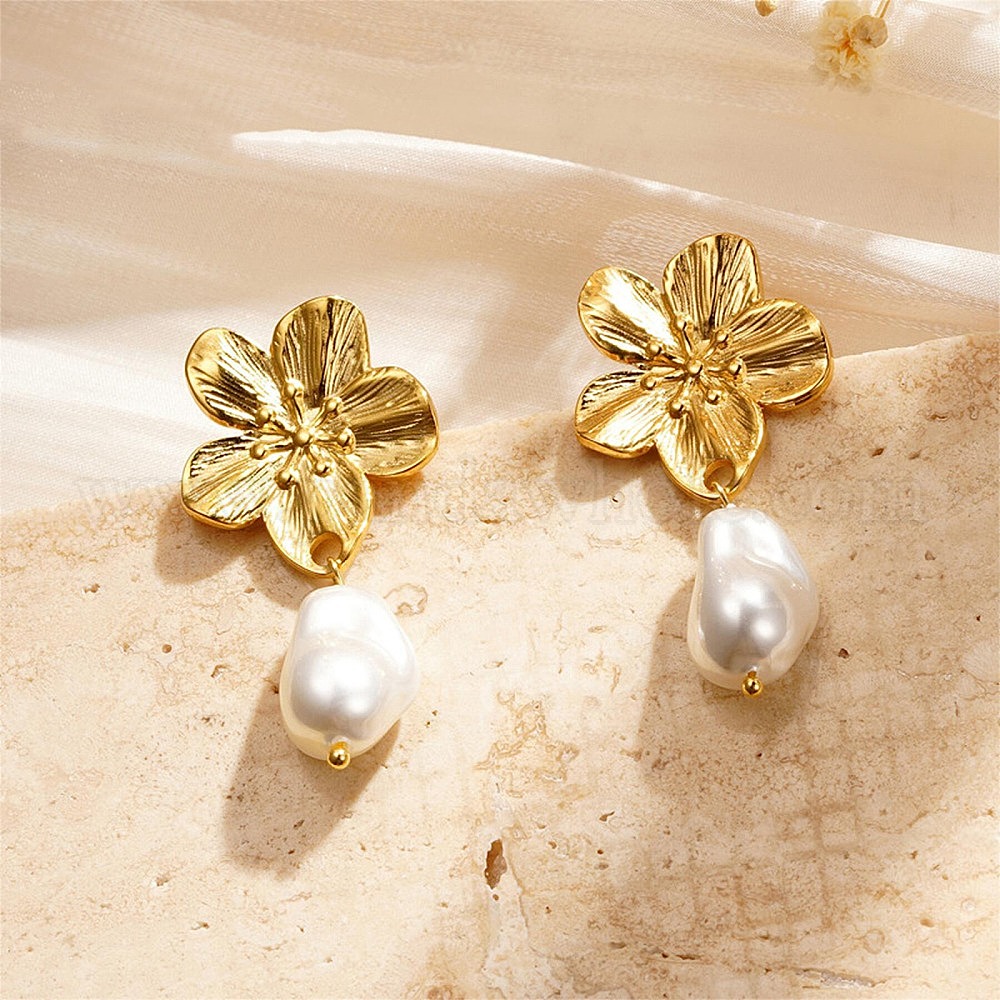 304 серьги-гвоздики из нержавеющей стали для женщин, с акриловой имитация жемчуга, цветок