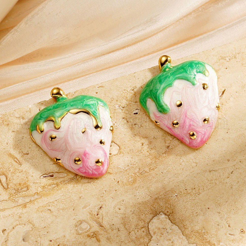 Серьги-гвоздики с эмалью в виде клубники, 304 украшения из нержавеющей стали для женщин