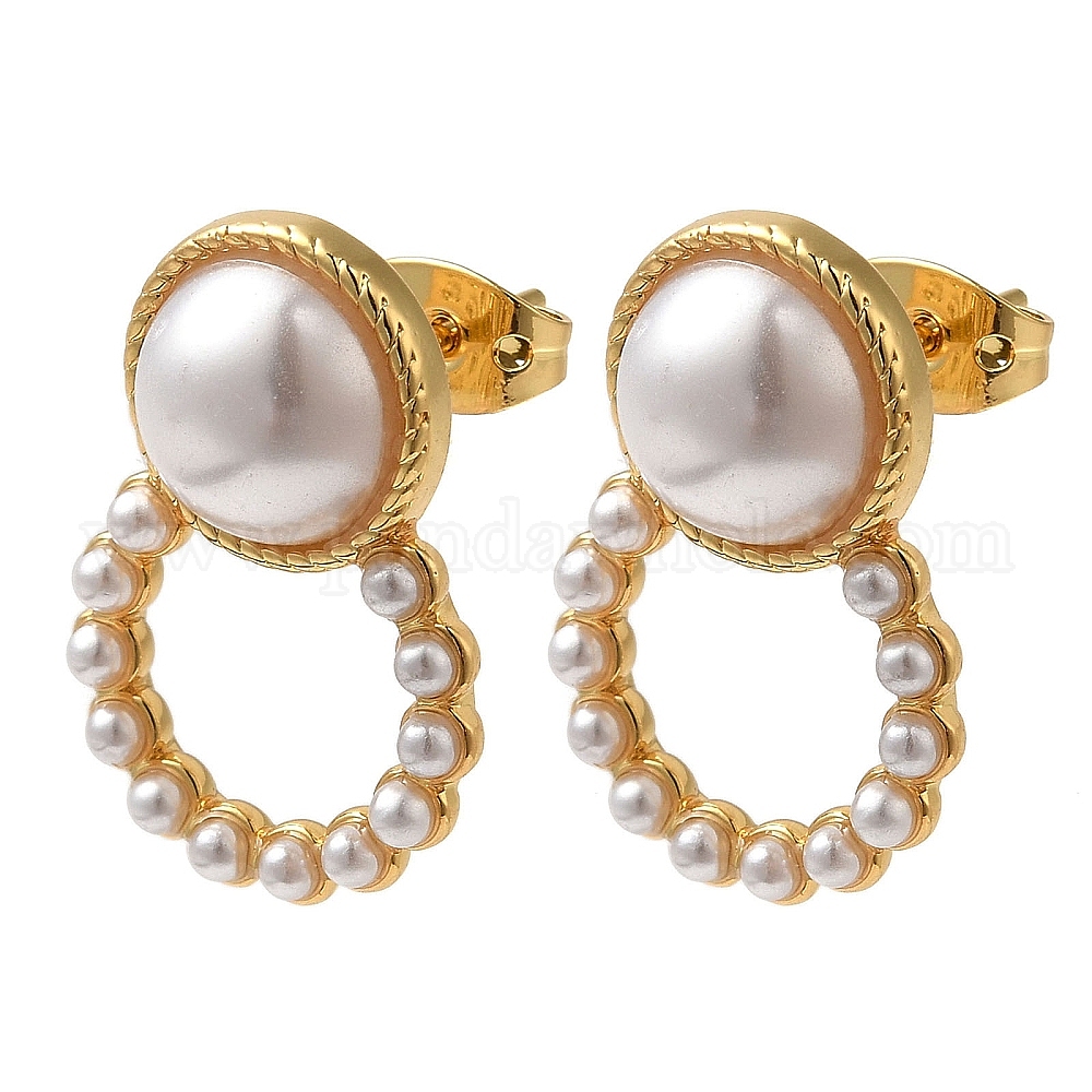 Серьги-гвоздики из латуни с покрытием из АБС-пластика и жемчугом для женщин, без кадмия и без свинца, долговечный, кольцо