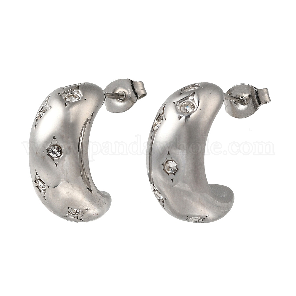 304 женские серьги-гвоздики из нержавеющей стали со стразами в форме буквы С
