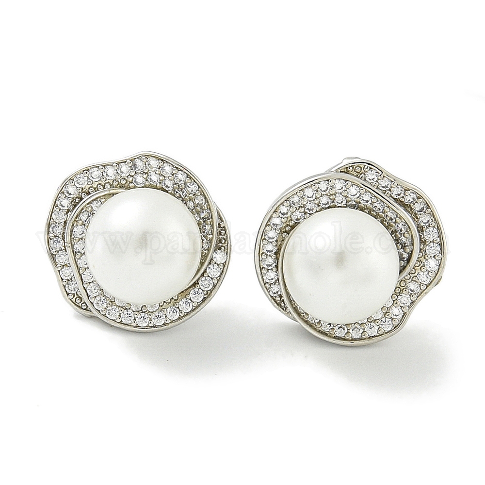 Серьги-гвоздики из латунного микро-паве, с пластиковой бисера, круглые