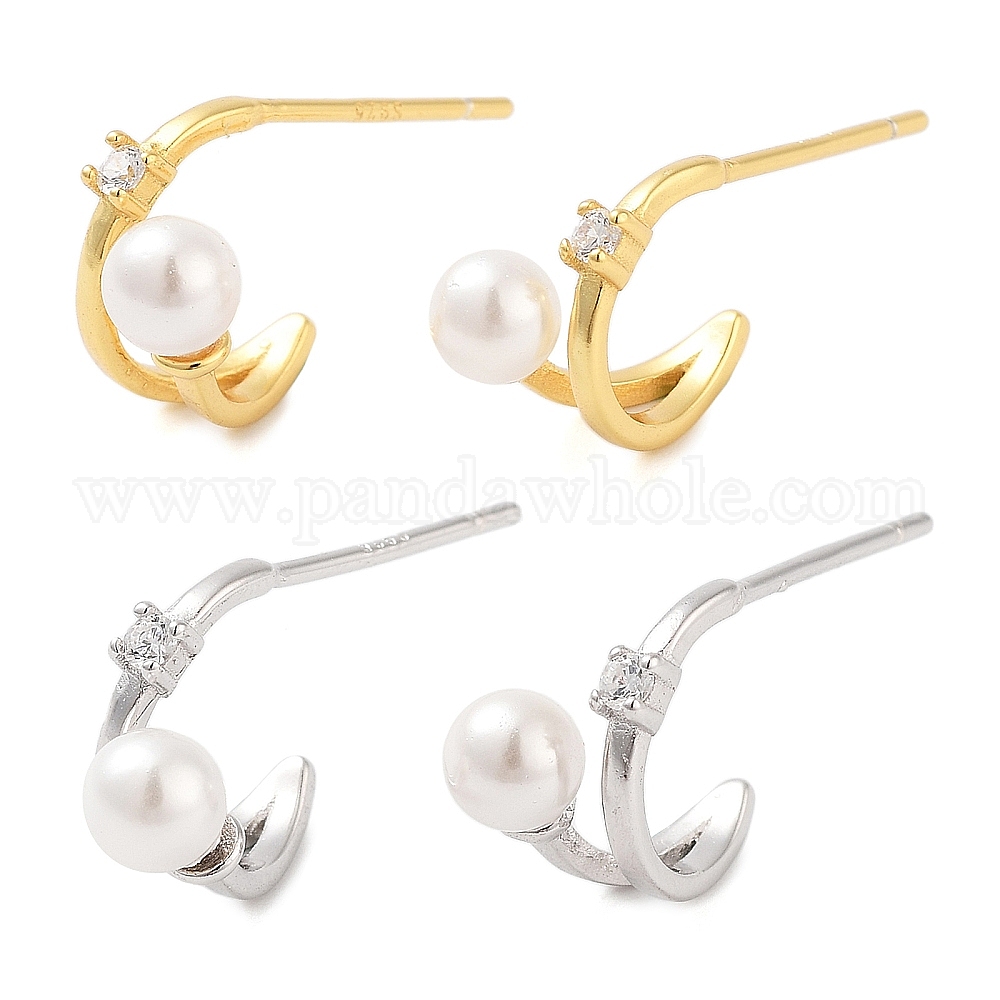 • Платинированный 925 серьги-гвоздики из стерлингового серебра с микропаве из прозрачных кубических цирконий для женщин, с бусинами в виде бусин-имитаторов, Реальная платина, 18x5.5~6 мм