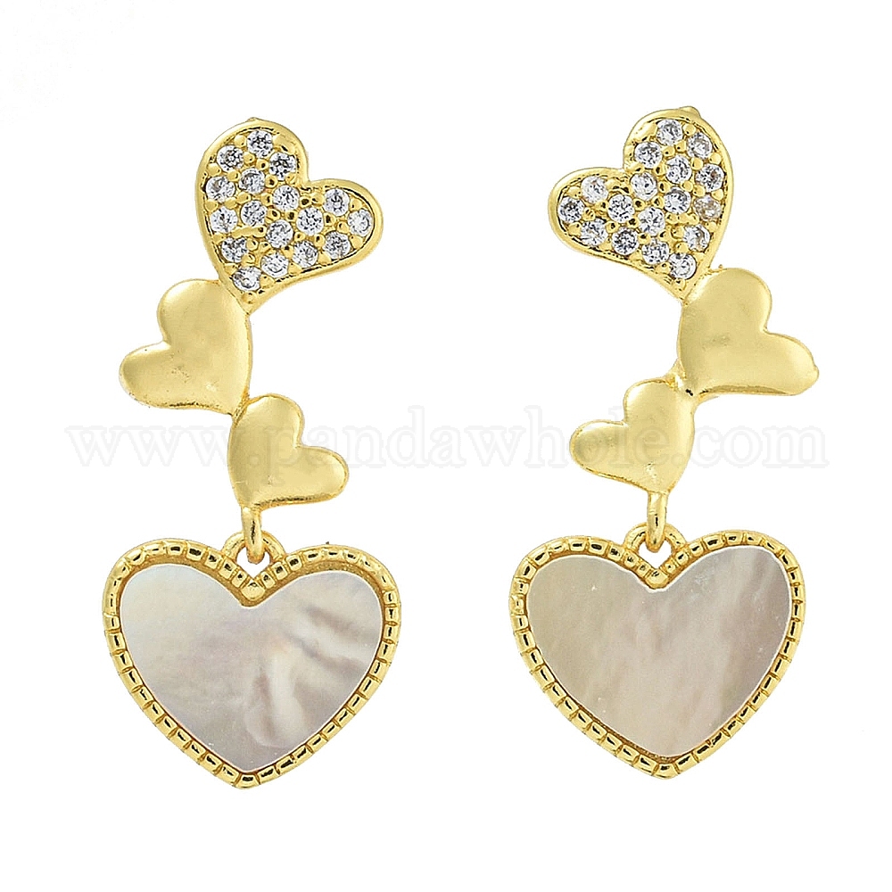 Серьги-гвоздики в форме сердца из латуни с прозрачным кубическим цирконием, с оболочкой, без свинца и без кадмия